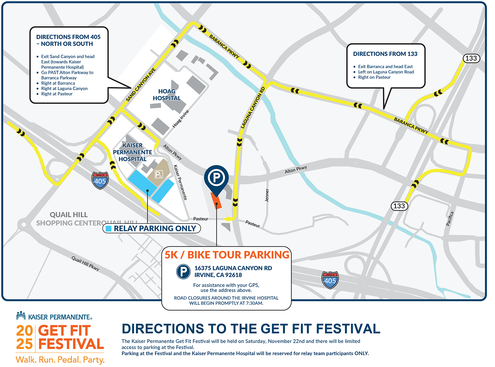 The Kaiser Permanente Get Fit Festival will be held on Saturday, November 22nd and there will be limited access to parking at the Festival.